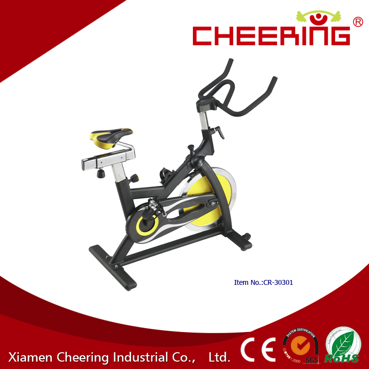 1) With handle and brake cover ; 2) Foam handle bar: vertical adjustable system; 3)Aluminium pedal; 4) Crank :3PCS; 5) Dual driving flywheel; 6)Chain transmission smooth; 7)With water bottle and bottle rack; 8) PU Seat: vertical and horizontal adjustable system; 9)Wheels for easy transportation; 10)The weight of wheel: 18KGS; 11)The maximum weight of user.125KGS